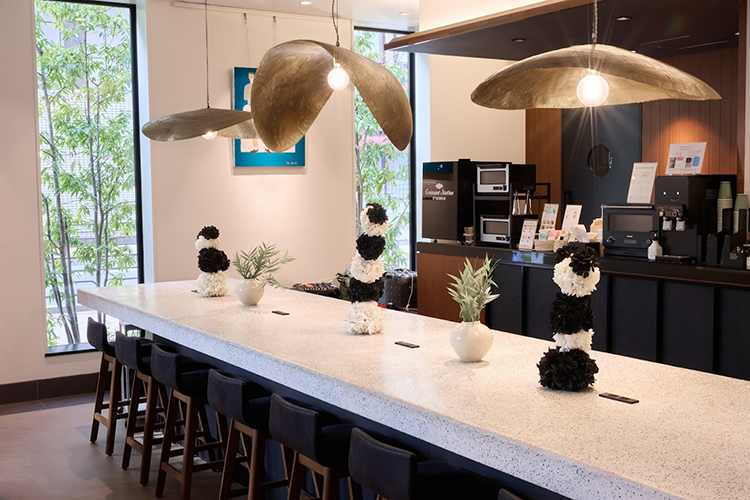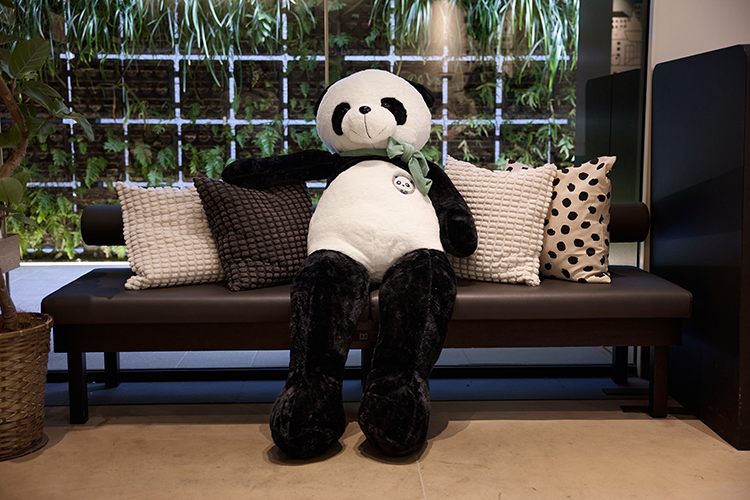 ロビーに160cmの等身大パンダを設置。チェックイン前から世界観を感じていただき、体験の始まりの舞台へと転換しました。