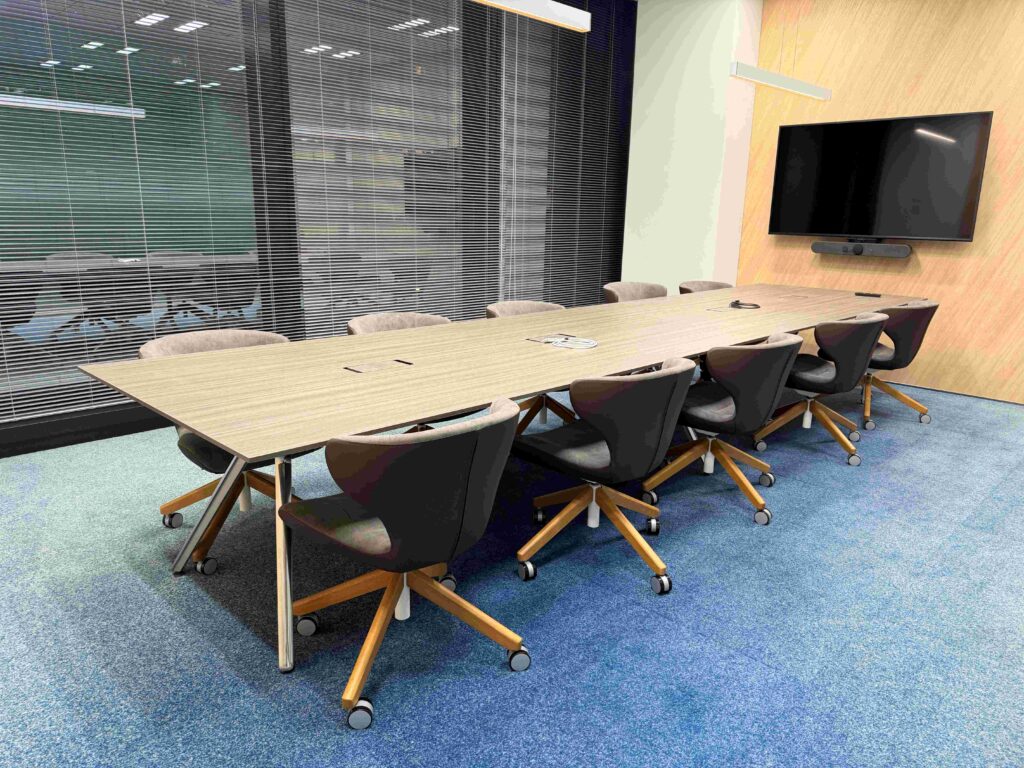 変な商社は、2026年3月末に実施された株式会社エイチ・アイ・エス様のオフィス移転プロジェクトにおいて、家具のご納品や会議用モニターの設置を含む空間づくりをサポートいたしました。